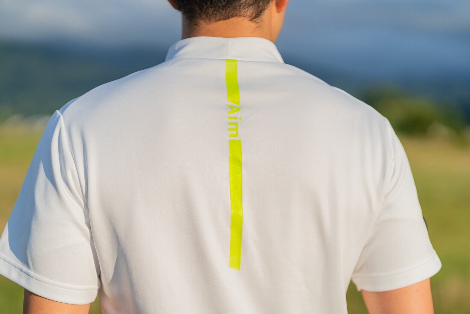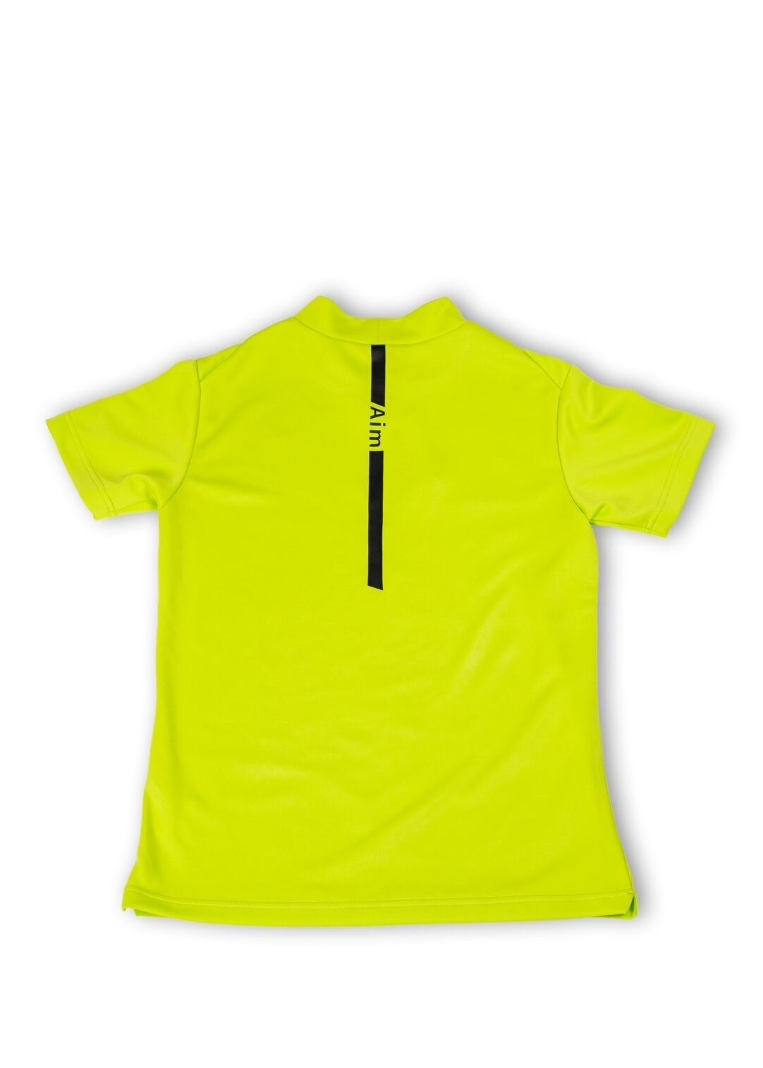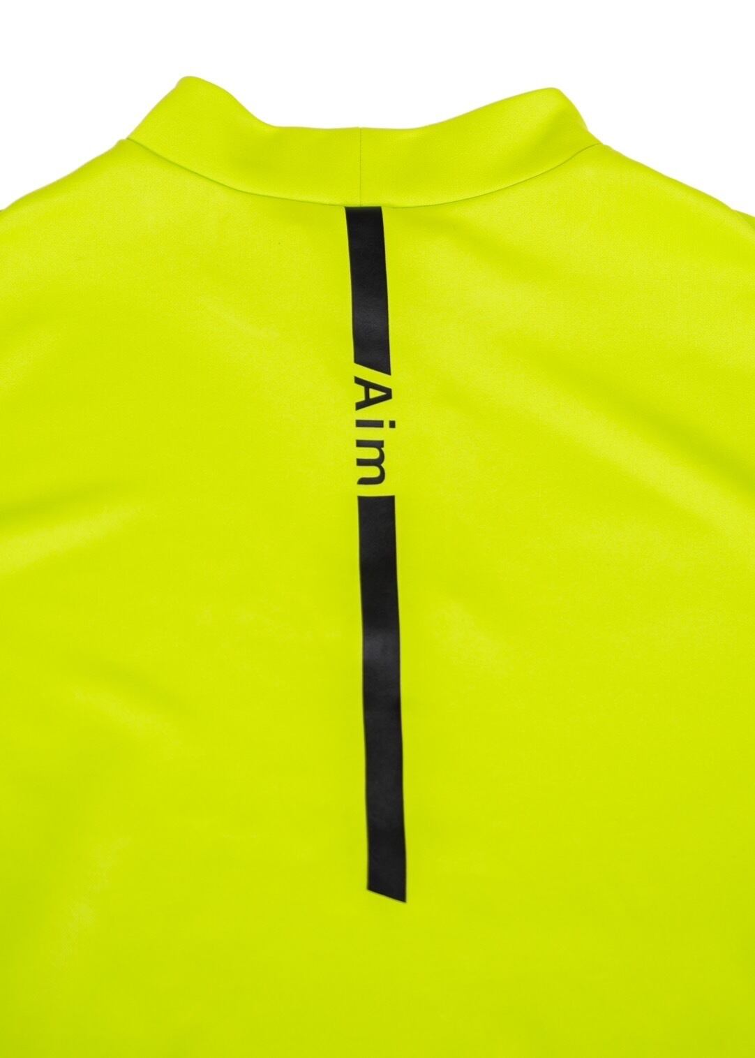 バックにAimの文字とシンプルなデザイン、肩にはブランドロゴのシリコンワッペンを配置しています。